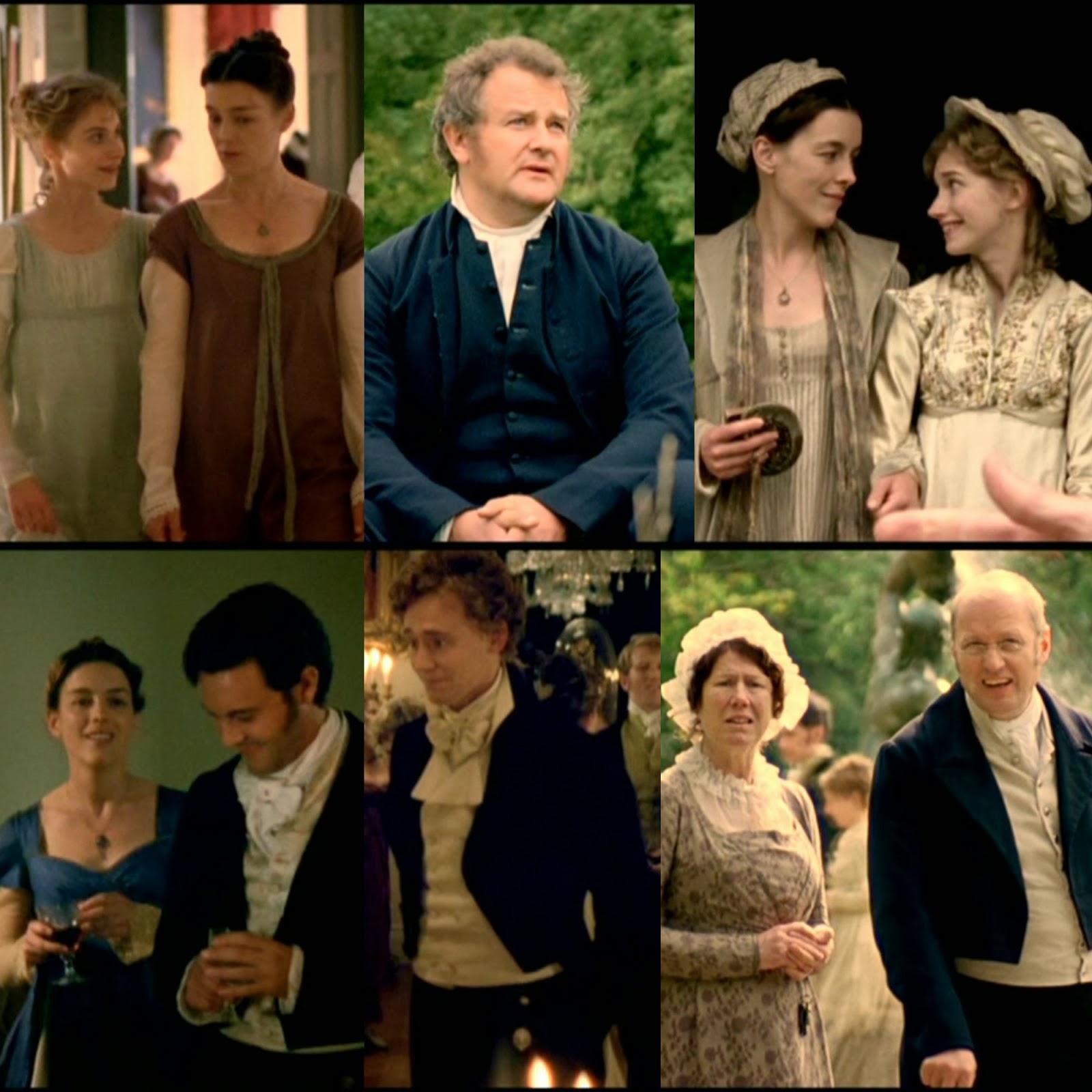 Sense & Sensibility (1981) - This miniseries version is very faithful to the book (besides cutting out Margaret) and except for a few odd hairstyles the characters wear costumes that are quite nice. I like Elinor and Lucy Steele's dresses in particular but other characters are quote stylish though perhaps a little washed out.